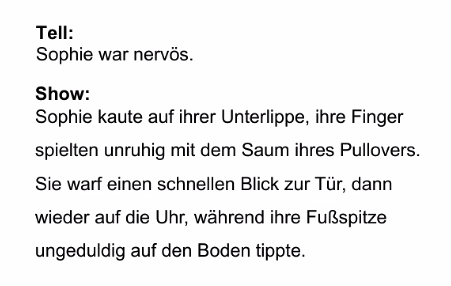Den meisten liegt der Einsatz von „Show, don’t tell“ nicht im Blut, sondern er muss geübt werden – das ist völlig okay.